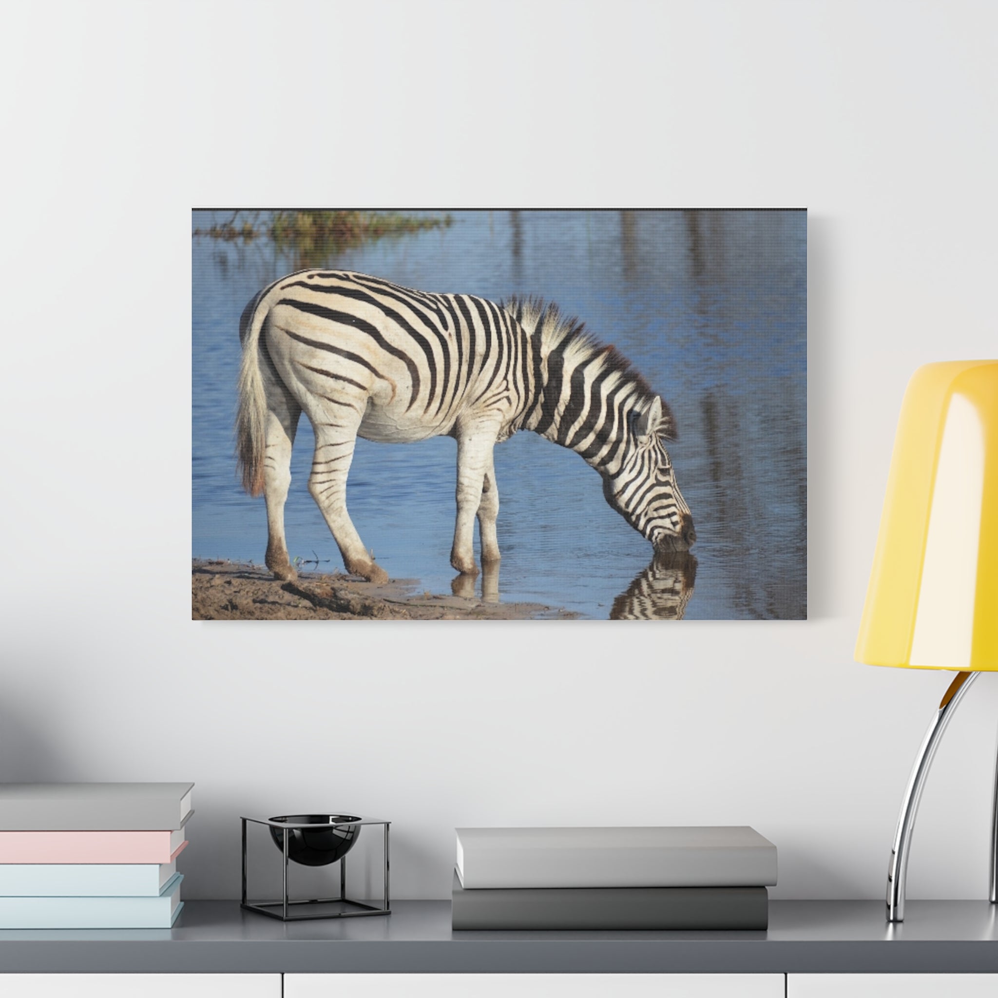 Canvas Print With Eyecatching Zebra At The Waterhole