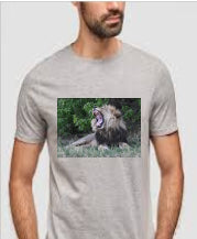 Purchase From Our Collection Of Exclusive Men's Tees Showcasing Stunning African Wildlife Like This Roaring Lion If You Don't Get To See A Magnificent Lion Like This Then At Least You Have Him On This Stunning Tee Watch Out He doesn't 'Scare Off The Wildlife'